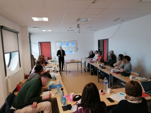 Suite à sa présentation, Rémi Ormeray, éducateur dans l'équipe mobile de prévention de la radicalisation pour l'association Itinéraires, a pris la parole. Il a pu présenter le travail de son équipe qui accompagne des jeunes signalés pour radicalisation et leurs familles. Le CRPRS mène régulièrement des sensibilisations avec l'équipe mobile qui apporte son regard de terrain précieux pour les professionnels présents. M. Ormeray a ainsi pu expliquer le cadre d'intervention de son équipe auprès des jeunes et l'importance d'une posture basse et d'une attitude d'écoute vis-à-vis des vulnérabilités exprimées par ces derniers et qui peuvent les mener dans des processus de radicalisation. Il a également mis en lumière différents outils de prévention et de dialogue avec les jeunes. Son intervention a suscité de nombreux échanges avec les professionnels, dont un certain nombre travaillent directement au contact de jeunes (CPE, éducateurs, assistants sociaux...).